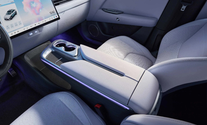 The passenger compartment has been kept in a simple, minimalist design. The high-set center tunnel has been detached from the cockpit, gaining an expanded lower storage compartment. The dashboard is dominated by only one, central touchscreen. It serves as both the clocks and the multimedia system with a diagonal of 15.6 inches.