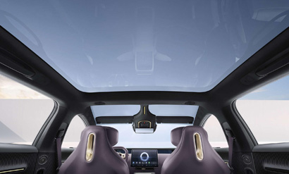 The cabin has seats upholstered in Nappa leather, an Alcantara headliner, and wood accents on the center console. The front row seats are heated, ventilated, have 16-way power adjustment, and have a massaging function, and can extend the foot rest and steeply recline the backrest to provide a 'zero-gravity' rest mode.[5] The rear outboard seats are also heated, ventilated and massaging. The center seatback folds down into an armrest, revealing two cupholders and a panel containing controls for the seat functions and the sunroof shade.