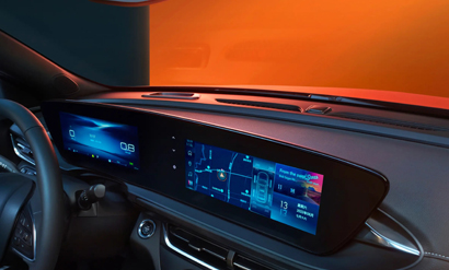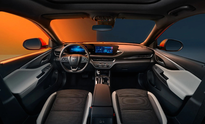 The interior of the Envista features a single panel combining an 8-inch screen for driver instruments and an 11-inch infotainment screen. Wireless Android Auto and Apple CarPlay are offered, as well as over-the-air updates and a surround-sound audio system. The front door panels and dashboard feature stitched elements, and the Avenir and ST trim levels feature embroidered head restraints logos.