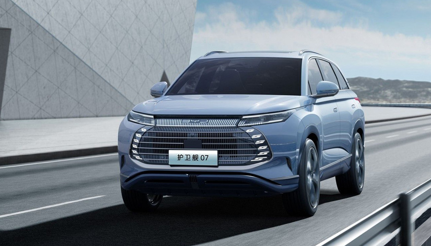 The BYD Huweijian 07, mainly translated in English sources as the BYD Frigate 07 or BYD Corvette 07 is a mid-size crossover SUV manufactured by Chinese automaker BYD Auto. The second plug-in hybrid electric vehicle (PHEV) of BYD's new "Ocean Series" of plug-in electric vehicles, the Frigate 07 is equipped with the DM-i hybrid technology shared with the BYD Destroyer 05, and the additional DM-p performance oriented hybrid technology from the PHEVs of the BYD Dynasty series.