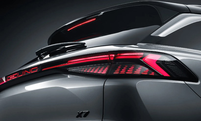 The Beijing X7 features AR live navigation, IoV, and vehicle interconnection systems. Active conversational voice interaction can also be realized via the in-vehicle interconnection system. Additionally, the Beijing X7 is also equipped with face recognition function, automatic seat adjustment, and active fatigue driving monitoring. For safety features, the X7 is equipped with 17 configurations including one-key automatic parking and traffic congestion assistance, with L2 level driving assistance enabled via software updates.