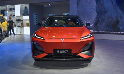 The Deep Blue S07 features slender LED headlights and a closed front grille. It's powered by the Qualcomm Snapdragon 8155