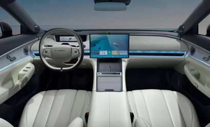 The interior features both a full LCD instrument panel and a 16 in (41 cm) floating center touchscreen with an AR-HUD digital head-up display, a Bose audio system, and mobile phone wireless charging. The operating system is Huawei's HarmonyOS with an addition of Chery's LION AI system that supports voice control, facial recognition, AR navigation, driving assistance, internet services, and smart home functions, etc