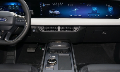 The full-LED headlights, which was to be available in Ford series vehicles in the future, are kept very flat and thus appear slit-shaped, the grille is trapezoidal and not drawn down as far as on the current Ford models.Wide-flared wheel arches give the vehicle a very sporty impression. At the rear of the car there is a continuous strip of taillights, including a centrally arranged, likewise trapezoidal exhaust and a large, silver-colored diffuser.