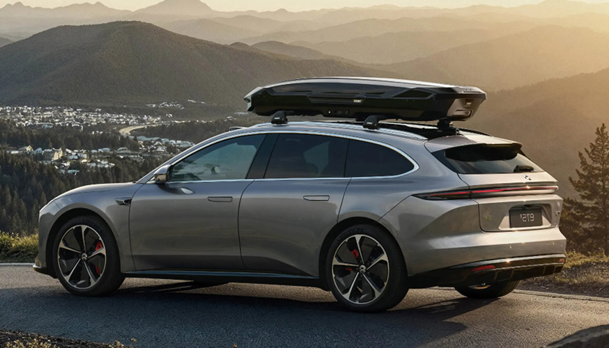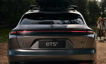 The ET5's exterior design is said to evoke Nio's EP9 supercar DNA and be ready for "Autonomous Driving”. ET5 is 4,790 mm (188.6 in) long and integrates high-performance autonomous driving sensors. The car has a rear ducktail spoiler, front air curtain, flush doorhandles, soft close doors and frameless windows to improve aerodynamic efficiency, achieving a drag coefficient of 0.24Cd. The car has a 1.28m² panoramic roof, said to protect up to 99.9% of UV rays from the sun.
