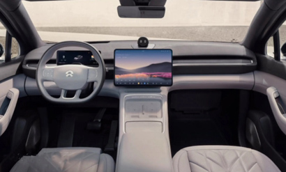The interior features the NOMI GPT assistant pod mounted on the top center of the dashboard. The passenger seat can now has a power extending footrest, allowing for a nearly flat "queen's seat" recline mode. The EC6 is equipped with a 1.77 m2 (19.1 sq ft) fixed panoramic sunroof.