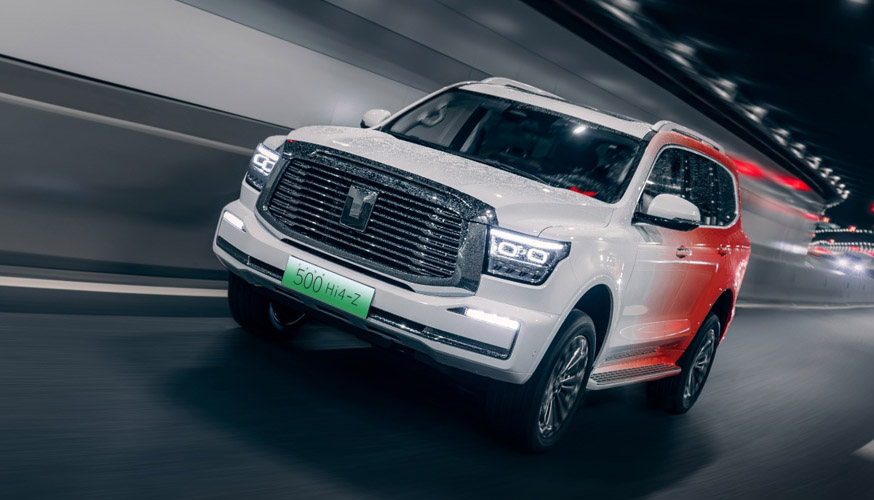 The Tank 500 is based on a body-on-frame chassis, locking front and rear differentials, and impressive off-road capability including 8.8-inch (223.5 mm) ground clearance, a 31.5-inch (800.1 mm) wading depth, and a 29.6º approach angle. The vehicle features a fully digital dashboard, with a 12.3-inch screen for the driver, and a 14.6-inch screen in the centre stack for infotainment.