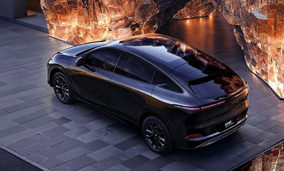 The G6 features a minimalist design characteristic of the company's other products, highlighted by a sleek silhouette and coupe SUV proportions.[5] Its front end is distinguished by double-row headlights, formed by two closely spaced LED strips. The Performance edition includes an opening spoiler at the lower edge of the body, which, combined with the vehicle's aerodynamic shape, is designed to optimize airflow, allowing for a drag coefficient as low as 0.248 Cd. The G6's design was developed in collaboration with renowned Chinese science fiction writer Liu Cixin.
