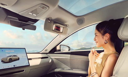 The exterior was originally available in Nebula White, Dark Night Black, and Star Ocean Beige, with Star Twilight Purple, Micro-moon Grey, and Star Rain Green becoming available later with the release of the Max models. The interior is available in Morning Fog Grey or Night Grey, with Dawn Purple available exclusively with the Star Twilight Purple paint color. It has the option of 18-inch low-drag or 19-inch sporty wheels. The Max variant has frameless side mirrors with teal autonomous driving indicator lights.